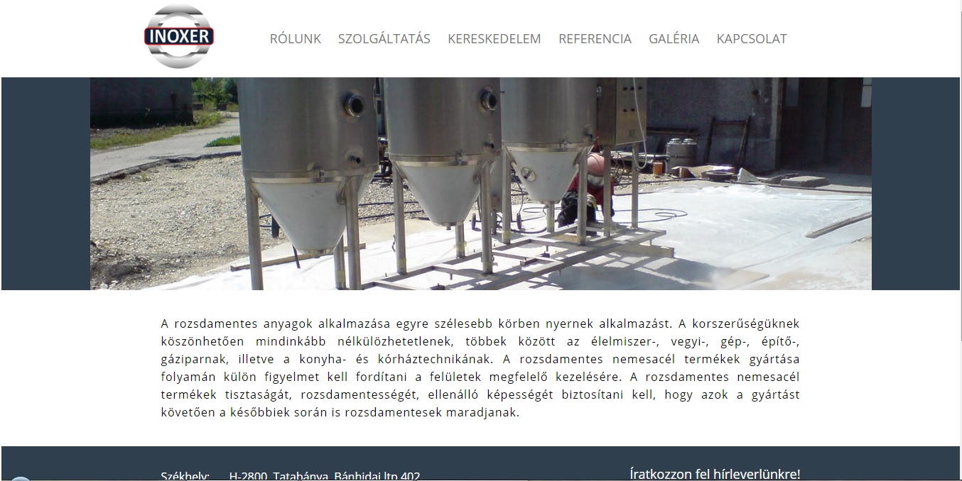Az www.inoxer.hu egy Egyszerű mobilbarát weboldal, mely egy cég szolgáltatásait hirdeti, üzenetküldő funkcióval.